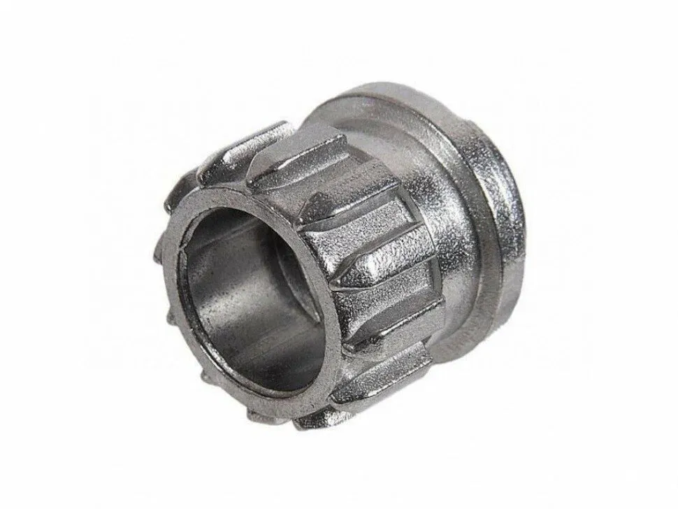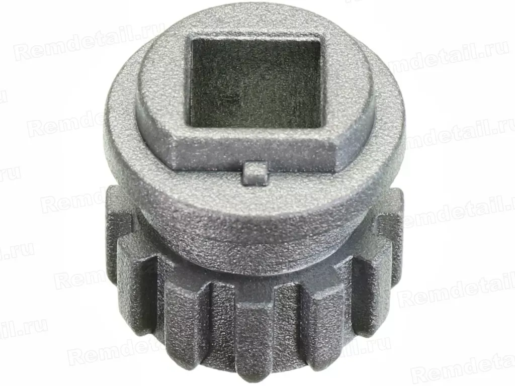 Предохранитель (муфта, втулка) шнека для мясорубок и кухонных комбайнов Bosch (Бош), Siemens (Сименс). Размеры: диаметр внешний в районе зубьев - 24 мм, количество зубьев 12, тип зубьев - прямой, посадка квадрат 10x10 мм, общая высота 23 мм, материал - металл.