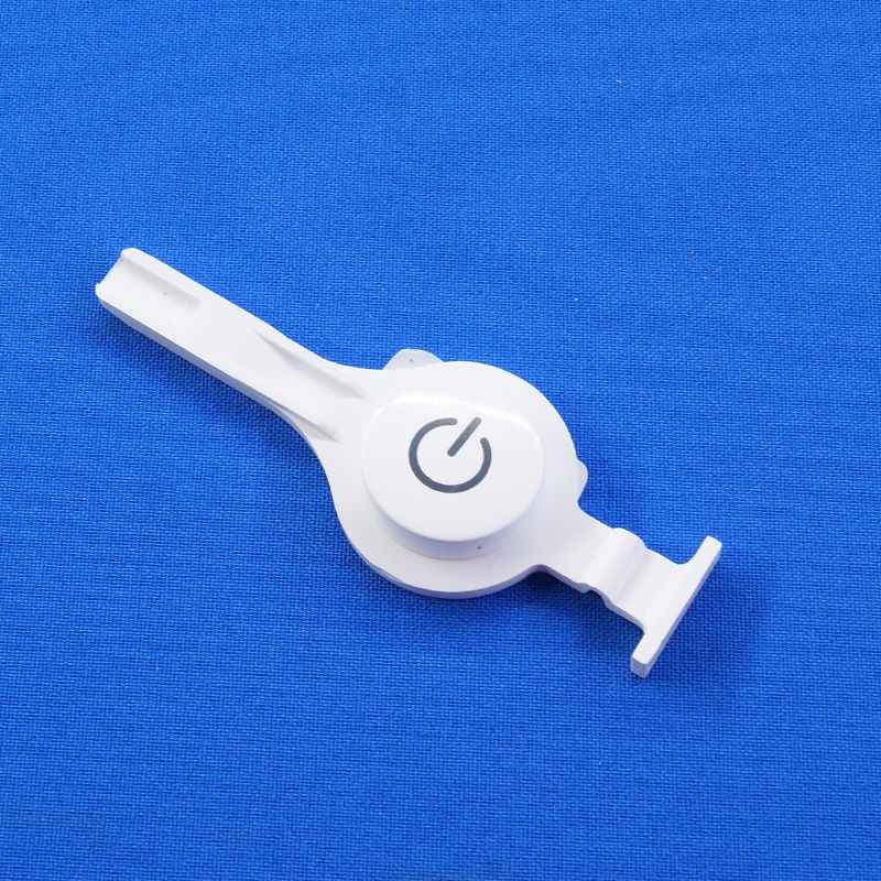 Оригинальный код изделия DC64-02389A. Фактически это фальшь кнопка, которая устанавливается со внутренней стороны панели управления. При надавливании на круглую, визуально оформленную кнопку "Power" изделие изгибается и надавливает на микро кнопку расположенную сбоку на модуле управления.