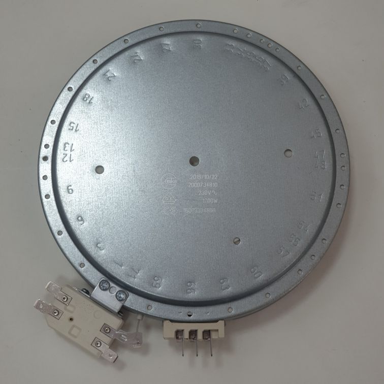 Конфорка для стеклокерамических плит (поверхностей) Indesit (Индезит), Hotpoint (Хотпоинт), Ariston (Аристон), Whirlpool (Вирпул). Характеристики: внешний диаметр 200 мм, диаметр рабочей зоны 180 мм, мощность 1700W (Ватт), напряжение 220V (Вольт).