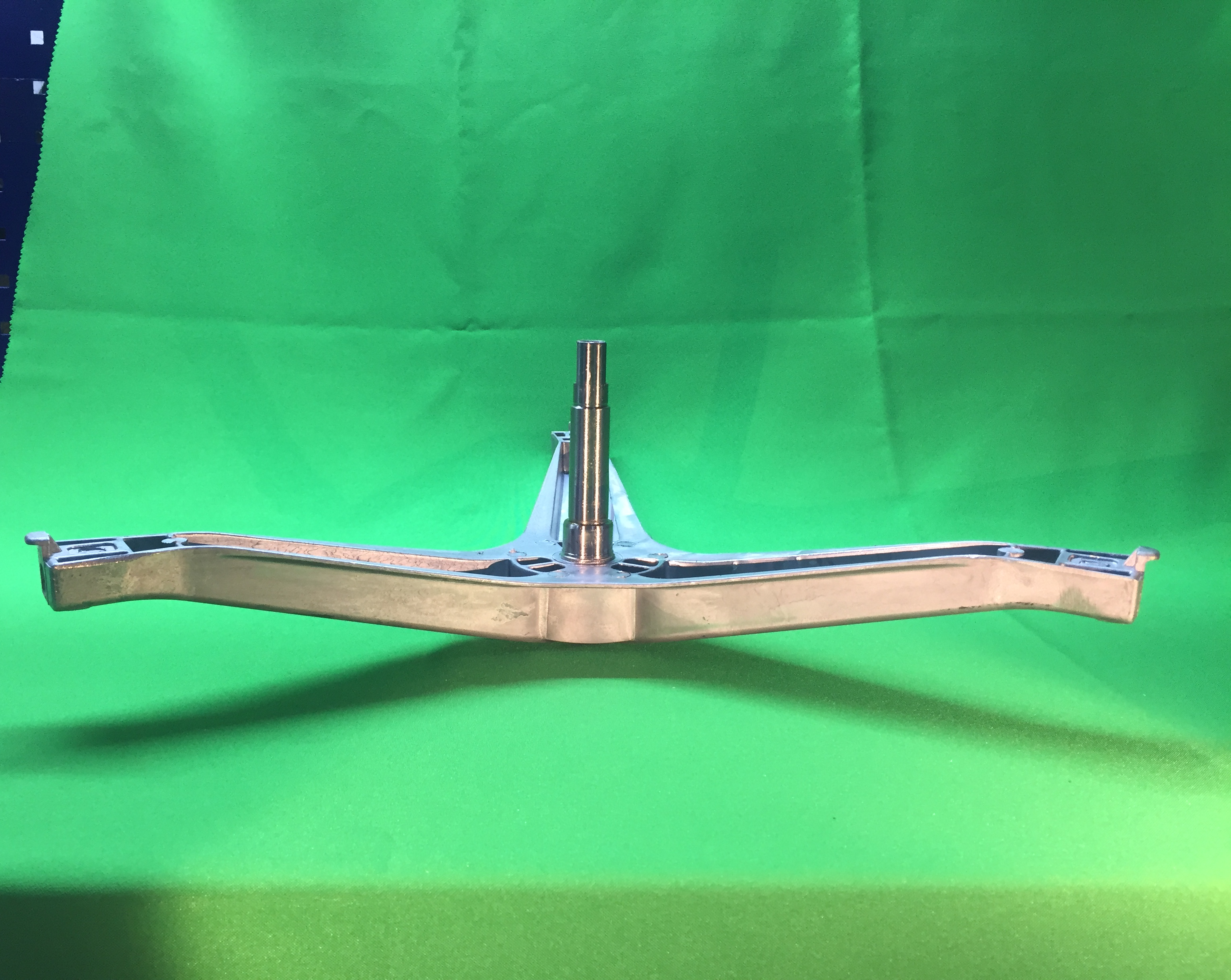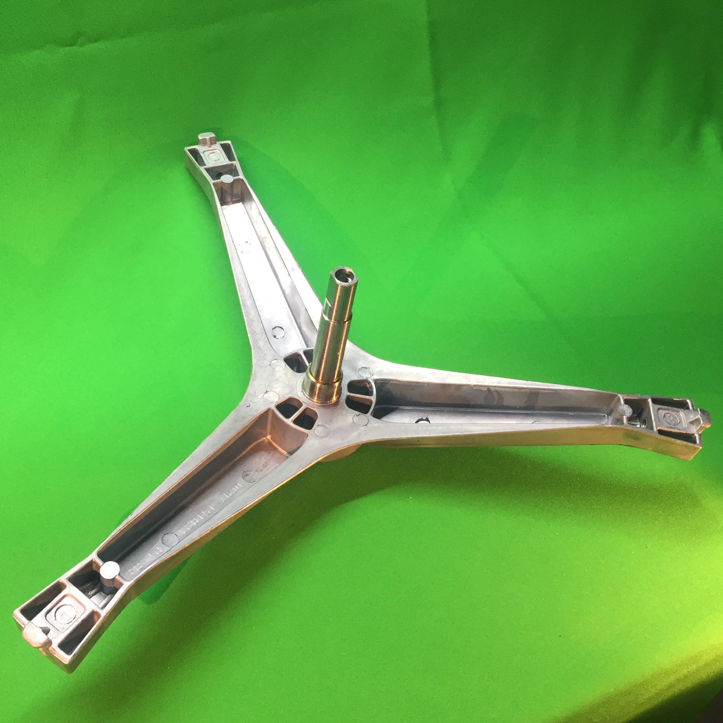 Крестовина барабана для стиральной машины Samsung (Самсунг). Характеристики: крепление шкива под болт, высота вала 107 мм, примерная длина луча 245 мм, устанавливаемые подшипники 6203, 6204, диаметр втулки под сальник 25 мм, сальник: 25x50,55x10/12 мм.