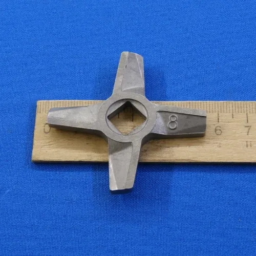 Нож №8 двухсторонний для мясорубки Zelmer (Зелмер), Bosch (Бош). Длина лопастей мм, высота мм, посадочное место: квадрат 10х10 мм. Оригинальная запчасть.