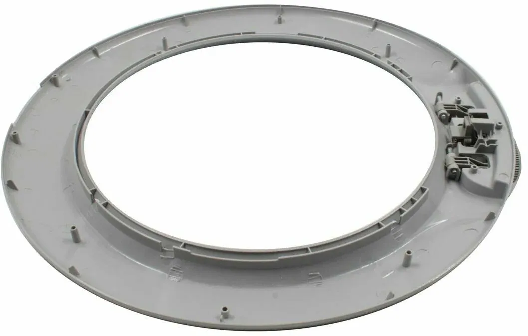 Обрамление люка- пластиковые элементы, придающие люку вашей стиральной машины более эстетичный внешний вид. Обрамление бывает наружной и внутренней части люка. Повредить их можно в случае не аккуратного обращения или иных механических воздействий. Вы можете повредить обрамление при открытии люка если стиральная машина установлена в ограниченном пространстве и какой-либо предмет мешает открытию. Также нанести вред обрамлению можно случайно уронив на него тяжелый предмет. При повреждении внутреннего обрамления следует его незамедлительно заменить т.к. через трещину или отколотую часть обрамления может протекать вода из бака.