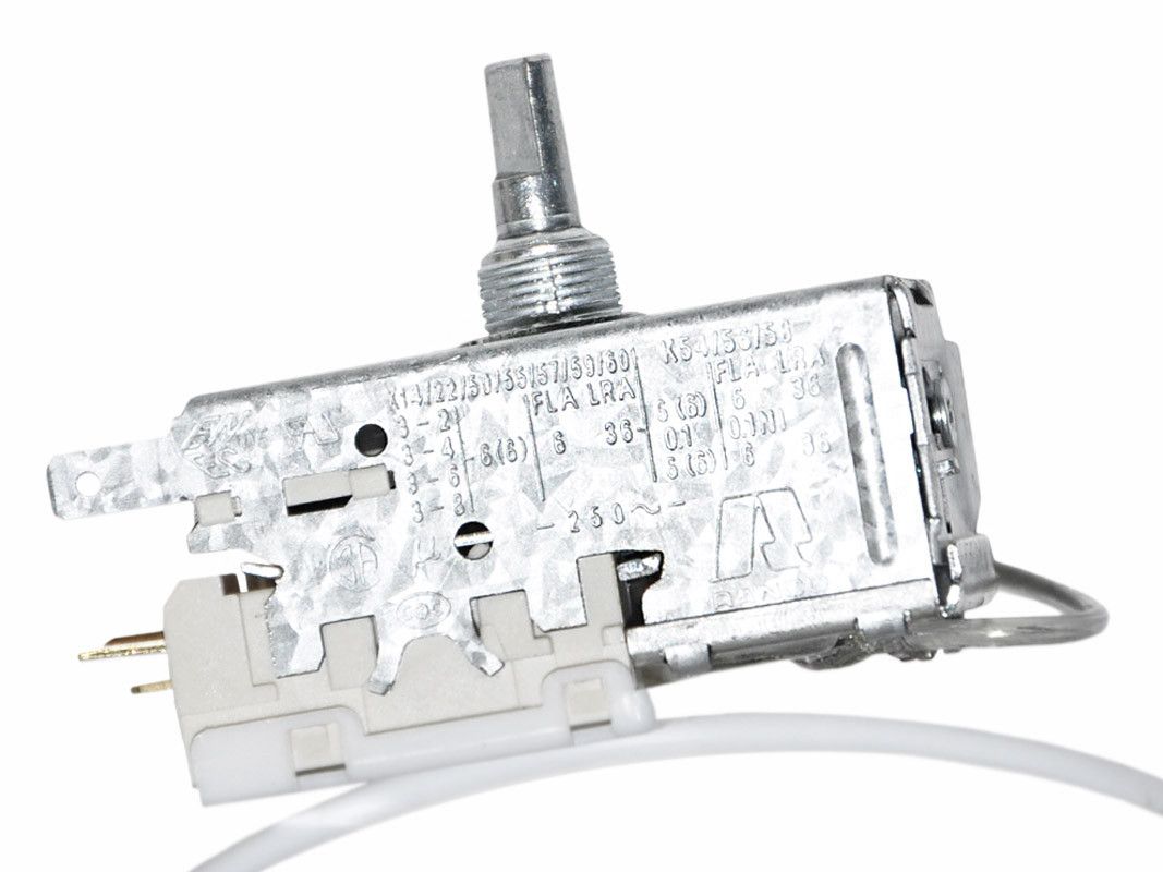 Термостат (терморегулятор, датчик реле температуры, термодатчик) K59-L1275 для холодильника. Длина капиллярной трубки 2,5 метра (2500 мм). Длина штока от корпуса 19 мм, от резьбовой части 12 мм. 5 контактов, из них 2 контакта заземления. Работа в холодном режиме: температура выкл - 26°C, температура вкл + 4°C. При работе в теплом режиме: температура выкл - 13°C, температура вкл + 4°C. Производство Ranco (Италия).