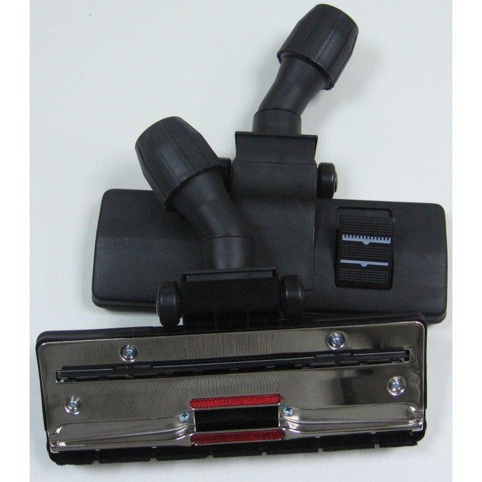 Щетка универсальная, для пылесоса. Предназначена для гладких и ворсовых поверхностей. Имеет автоматическую регулировку наклона и колеса. Внутренний посадочный диаметр 32 - 35 мм, регулируется затяжкой гайки. Платформа из нержавеющей стали. Материал корпуса - пластик.