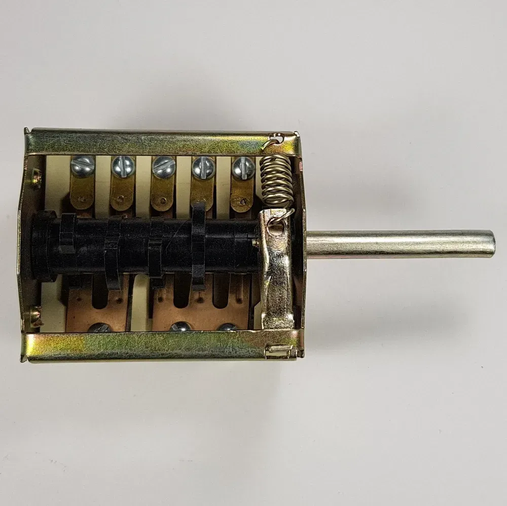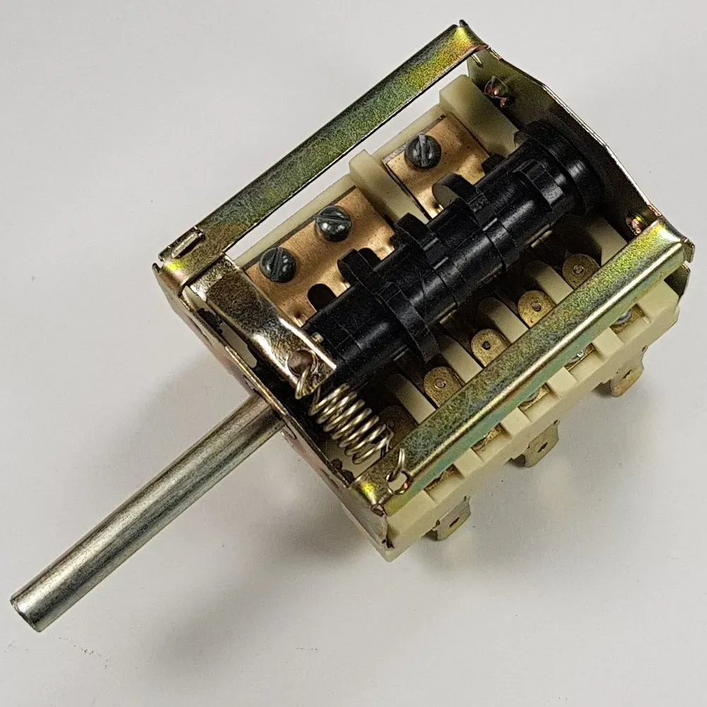 Переключатель конфорки 7-ми позиционный для плиты Нововятка Электра модель ПМ-7. Предназначен для установки на бытовые электроплиты для регулирования мощности конфорок и нагревательных элементов. Номинальный ток - 16 A (Ампер). Номинальное напряжение 220 V (Вольт).