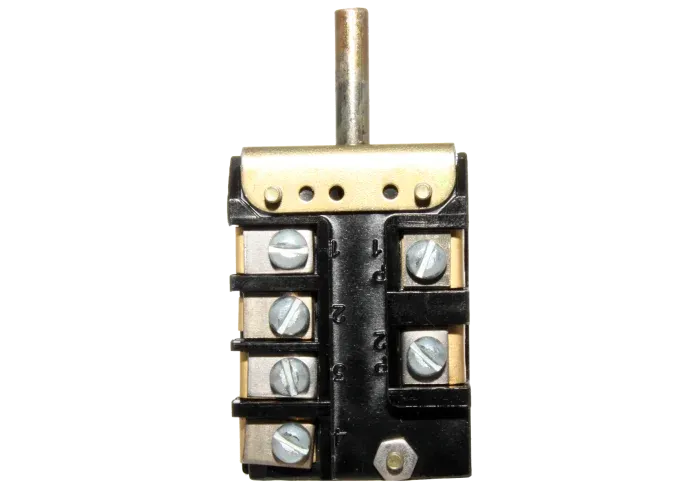 Переключатель режимов конфорки/духовки 5-ти позиционный (4 рабочих + 0), для плит и духовых шкафов Мечта, Томь. Длина штока 23 мм. Рабочее напряжение 250V (Вольт), максимальный ток 16 A (Ампер).