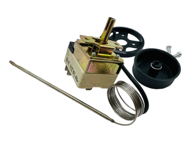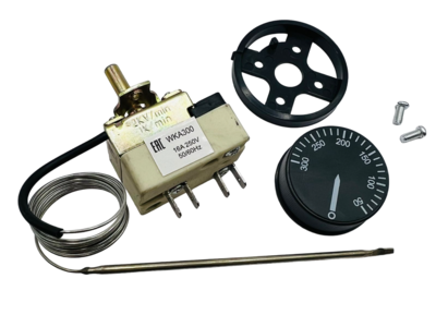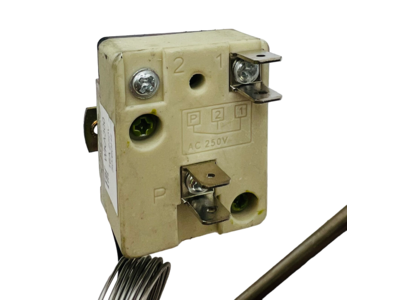 Термостат (термодатчик, датчик температуры, терморегулятор) капилярный для духовки Нововятка, Электра. Пределы регулирования температуры 50-300 градусов. Материалы корпуса - металл/керамика. Длина щупа - 129 мм, диаметр щупа - 3 мм, длина штока - 26 мм. Рабочее напряжение - 250 В, сила тока - 16 А.