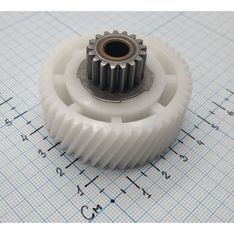 Шестерня MYS002 для мясорубки Mystery (Мистери), Leran (Леран). Характеристики: диаметр больший 53 мм, количество зубьев 47 шт., тип зубьев - косой, диаметр малый 20 мм, количество зубьев 17 шт., тип зубьев - прямой, высота белого пластика - 20 мм, высота общая - 32 мм, диаметр посадочного отверстия - 8 мм. Материал изготовления - металл, пластик.