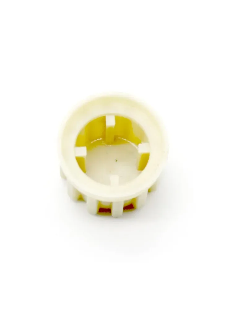 Втулка (предохранитель, муфта, колпачек) шнека для мясорубок и кухонных комбайнов Аксион, Бриз, Ратеп. Колпачек без отверстий. Характеристики: Высота общая втулки 21 мм, диаметр внешний 26 мм, диаметр внутренний 23 мм. Количество зубьев - 12 шт. Внутри 4 упора.
