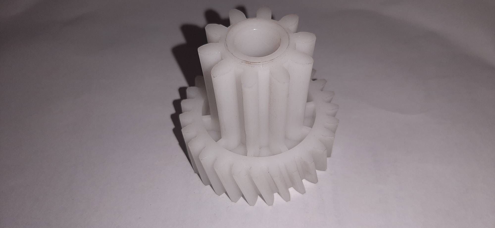 Шестерня средняя для мясорубки Гамма. Размеры: диаметр 50/30мм, зубья 27/10шт, косые/прямые.